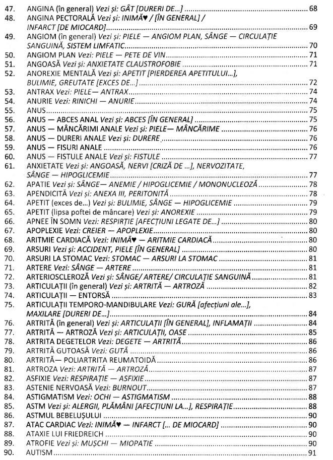 Acesta este un dictionar complet, revizuit, al bolilor si al afectiunilor aflate in stransa legatura cu conflictele generate de ganduri, sentimente si emotii. Informatiile acestei lucrari au scopul de a facilita intelegerea simbolica, realizata de creier, care ne ajuta sa constientizam conflictul ce genereaza o anumita boala. Toate acestea, pentru a parcurge mai bine etapele de acceptare si de integrare, conditii prealabile si necesare vindecarii. Acest dictionar este un instrument pentru deschiderea constiintei si pentru studiu, nu doar pentru sine, ci si pentru familie sau pentru cei din jurul nostru, constituind de asemenea o cale complementara oricarui demers terapeutic, fie medical traditional, fie de medicina alternativa. Cartea poate fi un instrument de intelegere, de investigare si de transformare, pentru a ne ajuta pe fiecare dintre noi in demersul complet de vindecare. Astfel ne putem redobandi sanatatea, starea de bine si bucuria de a trai. Cititorul poate folosi tehnica de integrare explicata in carte pentru a citi paragrafele care il intereseaza, pentru a aduce o schimbare benefica, salvatoare, a atitudinilor, comportamentelor, sau gandurilor sale, cu scopul de a dezactiva sursa conflictului aflata la originea afectiunii, pe plan constient sau inconstient, ajutand astfel procesul de vindecare.
