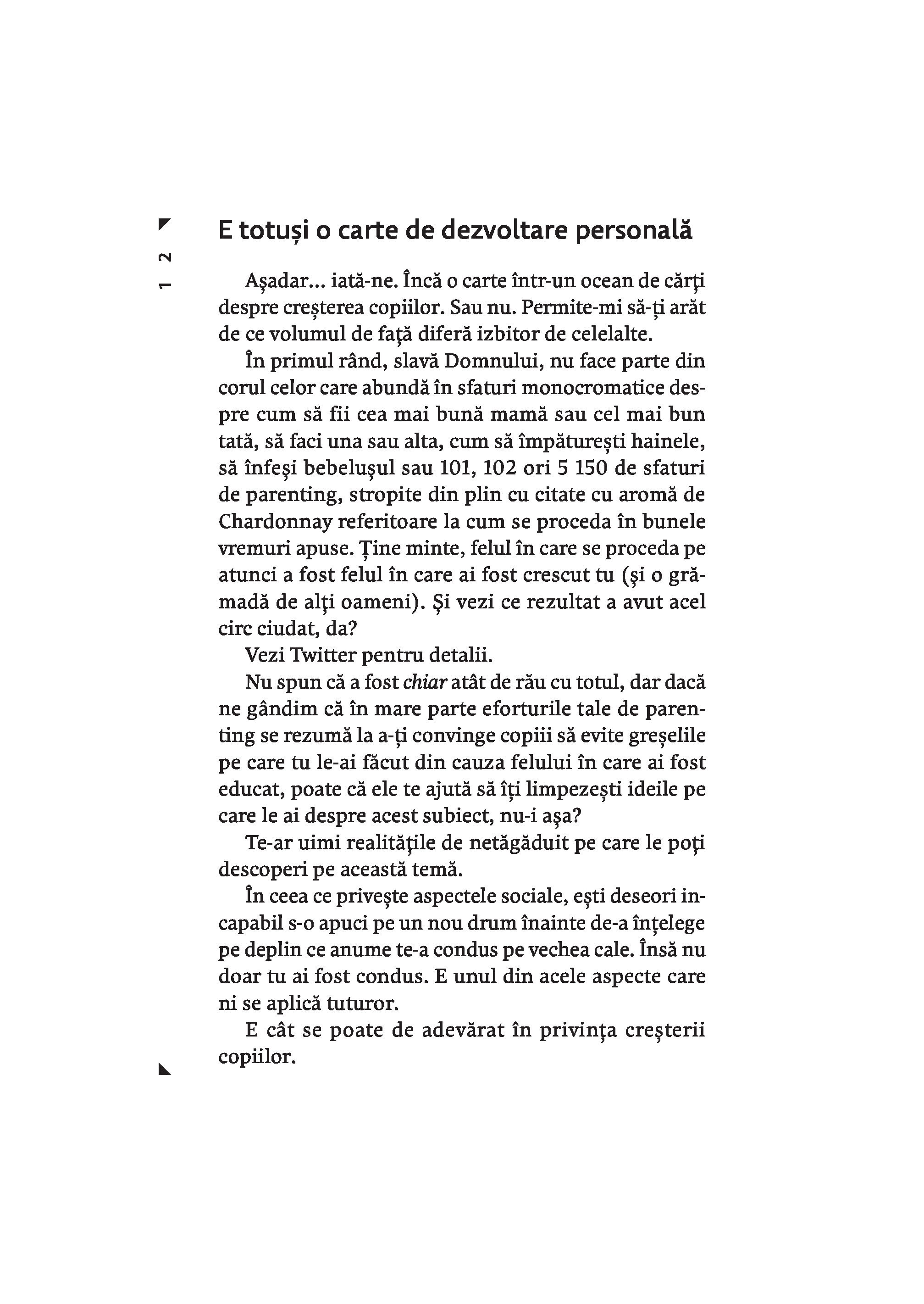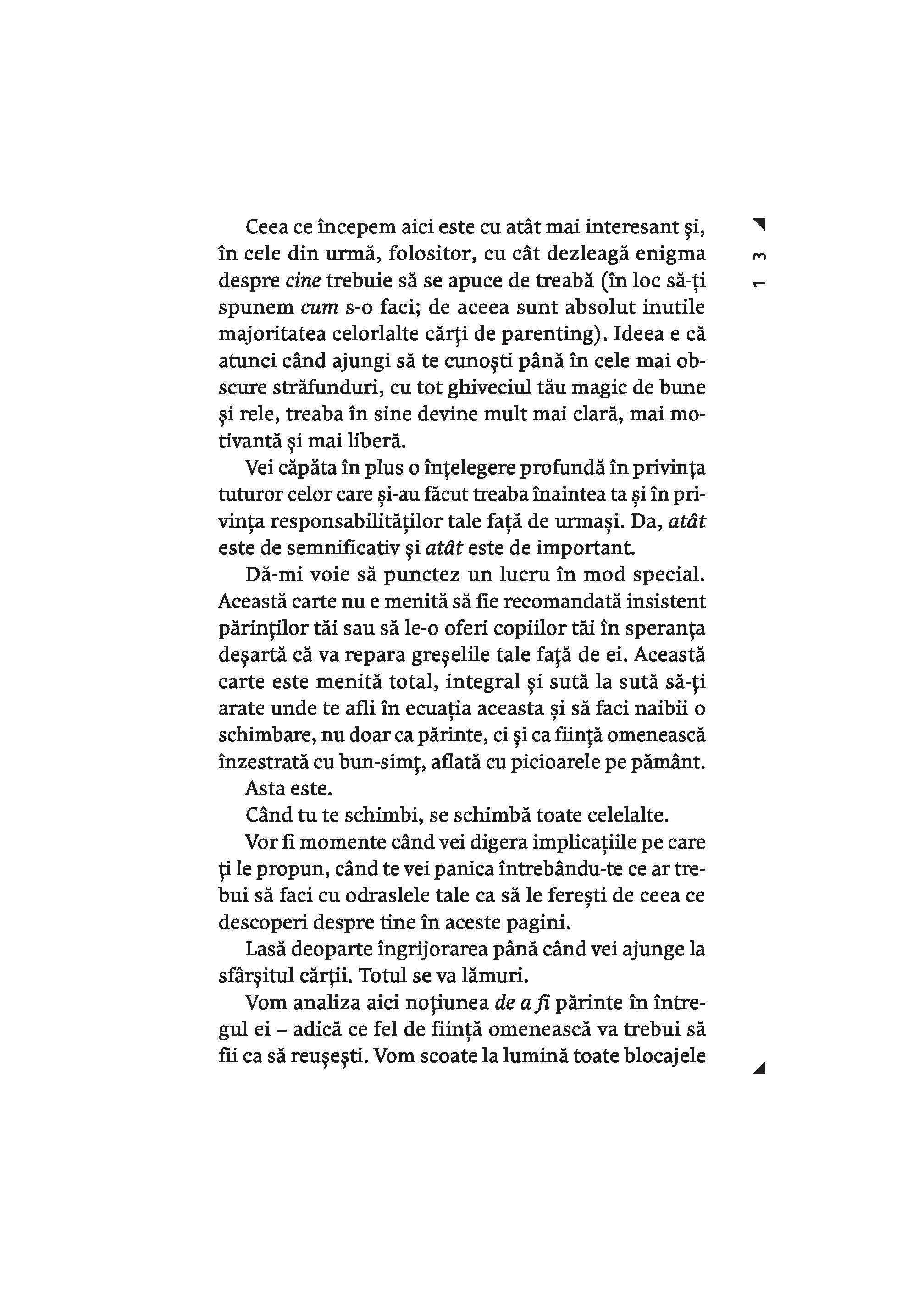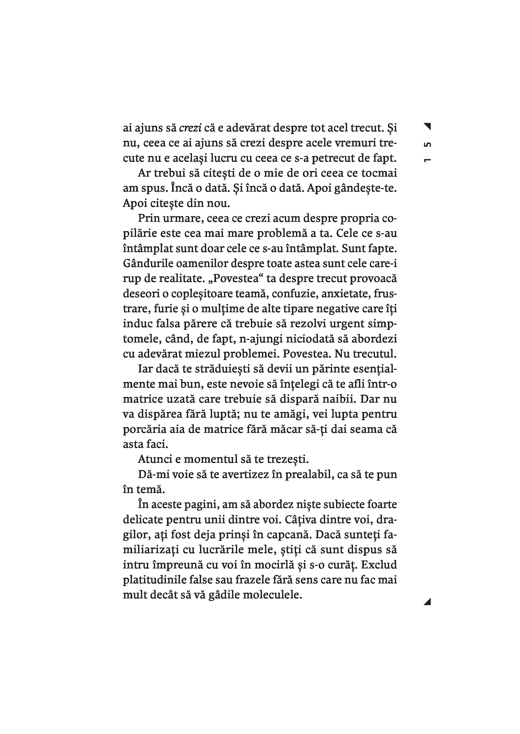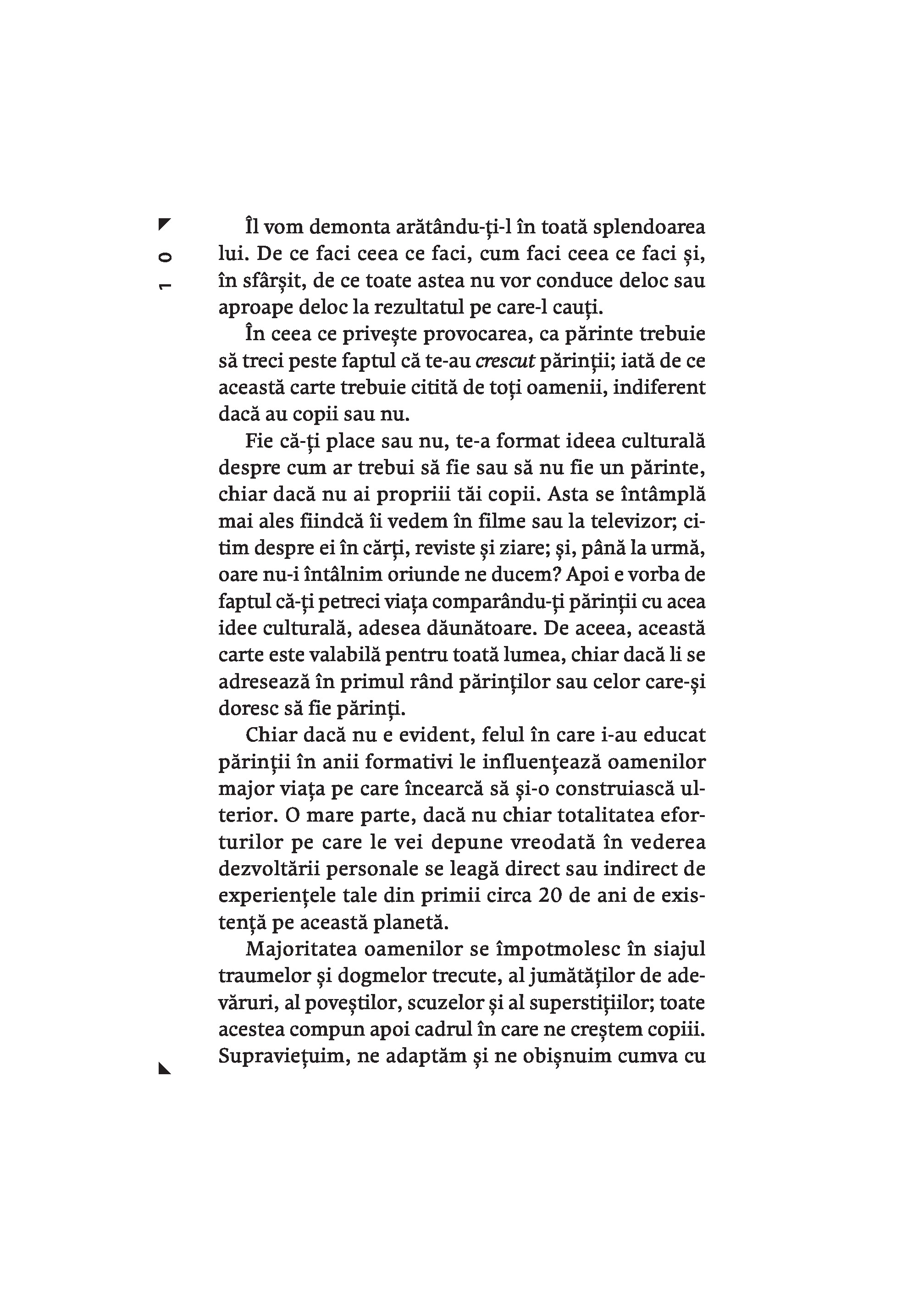 Maturizeaza-te este o carte din care invatam cum sa depasim teama ca nu suntem „parinti buni”, ca sa putem detine controlul in tot ceea ce facem si sa-i indrumam si pe copiii nostri sa-si asume responsabilitatea pentru deciziile din viata lor. Gary John Bishop a ajutat milioane de oameni sa renunte la autosabotare. El ne demonstreaza ca, in parenting, nu avem nevoie de secrete din batrani, de trucuri sau tehnici-minune; trebuie doar sa ne revizuim viata, ca sa intelegem cine suntem. Nu ne vom ridica niciodata la inaltimea modelului de „parinte perfect” pe care ni l-am construit in minte – o versiune care combina imaginea parintilor nostri cu diverse idealuri culturale si opinii exprimate pe retelele sociale.Vrem sa fim parinti buni, dar trecutul ne trage inapoi. Daca te gandesti: „Nu pot fi un parinte bun, din cauza ca am avut o copilarie urata, parinti rai sau o experienta traumatizanta” – opreste-te! Renunta la toate aceste idei si incepe sa actionezi in prezent pentru a deveni persoana care isi creste copiii cu iubire, iertare si integritate. In acest fel, iti modelezi si iti inzestrezi copiii pentru a pasi plini de incredere in lume si a prospera.Fie ca esti parinte, vrei sa devii parinte sau pur si simplu ai parinti, cartea de fata scoate la lumina adevaruri esentiale despre cine esti si cum te prezinti lumii – de ele depinde capacitatea de a prelua total controlul asupra directiei vietii tale si a le arata copiilor cum sa-si urmeze propriul drum.Gary John Bishop este unul dintre expertii de prim rang din domeniul dezvoltarii personale. Abordarea sa de tip „filosofie urbana reprezinta noul val in transformarea personala pozitiva si arta de a trai, care asigura oamenilor rezultate miraculoase in ceea ce priveste calitatea vietii si performantele obtinute.