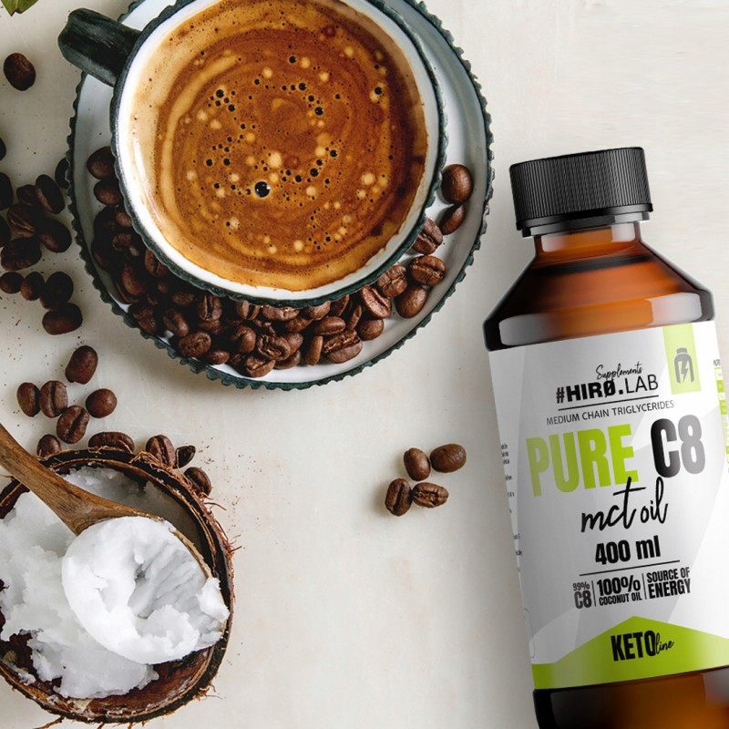 BENEFICII MCT OIL - sustine controlul greutatii - va mentine senzatia de satietate - C8 sustine si accelereaza productia de cetone - ulei MCT pur, fara gust si fara miros - sprijina buna functionare a intestinelor - sursa excelenta de energie - extract pur de nuca de cocos Ulei MCT - combustibil pentru creier Uleiul Hiro.Lab nu are miros sau gust, asa ca il puteti adauga la orice mancare si bautura. Perfect ca adaos la cafeaua bulletproof, care va garanta o sursa excelenta de energie, va imbunatati concentrarea si procesele de gandire. Uleiul MCT este imediat absorbit si utilizat de organism pentru a produce energie. Nu trebuie decat sa il adaugati in bautura dvs. si sa il beti inainte de antrenament pentru a observa cum va afecta calitatea si intensitatea acestuia. Uleiul MCT - arzator de grasimi Uleiul MCT sustine pierderea in greutate: creste senzatia de satietate si suprima pofta de mancare. Sustine procesul de ardere a grasimilor prin cresterea termogenezei si ajuta la reconstructia muschilor. Pure C8 este completarea perfecta pentru dietele cu continut scazut de carbohidrati, cum ar fi paleo, Low Carb, High Fat si keto. In plus, uleiul de nuca de cocos are un efect pozitiv asupra activitatii intestinelor, putand chiar sustine lupta impotriva microorganismelor care distrug tractul digestiv. Acidul caprilic are lanturi scurte de carbon, astfel incat este usor de digerat si ofera un impuls energetic la doar cateva minute dupa ingerare. Ambalaj comod din plastic Un avantaj important al MCT Oil C8 este ambalajul din plastic, foarte etans. Protejeaza eficient lichidul de razele soarelui, datorita caruia reduce rancezirea si este extrem de usor. Puteti pune cu usurinta uleiul Hiro.Lab intr-un rucsac sau intr-o geanta de sport, este usor si il puteti lua oriunde doriti. Sticla de plastic, spre deosebire de cea de sticla, este mai rezistenta la lovituri si socuri, nu o puteti sparge. Plasticul a fost testat in laborator si nu contine ingrediente daunatoare, este complet sigur. Ulei MCT testat in laborator Uleiul MCT C8 de la marca Hiro.Lab este testat in laborator, ceea ce inseamna ca este un produs complet sigur, fara contaminare si toxine. Cercetarile au dovedit ca 99% din continutul produsului este acid caprilic. Uleiul MCT nu contine gusturi si mirosuri straine, are o culoare pura. Puteti descarca testele de lichid si de ambalare in partea de jos a ofertei. PROSPECT MCT OIL Informatii nutritionale/ 100 grame Energie- 3890 kJ/900 kcal Proteine- 0 g Carbohidrati- 0 g Zahar- 0 g Grasimi- 100 grame din care acizi grasi saturati- 100 grame din care acid caprilic- 99 grame din care mononesaturati- 0 g din care polinesaturati- 0 g Fibre- 0 g Sare- 0g Compozitie de acizi grasi C 6 Acid caproic C 6:0- max. 0,5%. Acid caproic C 8:0- min. 99% acid caproic Acid capric C 10:0- max. 1% MOD DE ADMINISTRARE: Se recomanda sa fie utilizat ca supliment la mese. Produsul este destinat adultilor. A se pastra la distanta de lumina directa a soarelui, la temperaturi sub 25 de grade. AVERTIZARI - Suplimentele alimentare nu pot fi folosite ca substitut pentru o dieta variata. Nu uitati ca numai un stil de viata sanatos si o dieta echilibrata asigura buna functionare a organismului si mentin o stare buna. - Nu depasiti portiile recomandate pentru consumul pe parcursul zilei. Produsul nu poate fi utilizat de persoanele care sunt alergice la oricare dintre ingredientele sale. A nu se pastra la indemana copiilor mici. A se pastra intr-un loc uscat, la temperatura camerei, in recipiente bine inchise. - Nu folositi un supliment alimentar ca inlocuitor al unei alimentatii variate si echilibrate! Acest supliment alimentar nu este destinat sa diagnosticheze, sa trateze, sa vindece sau sa previna vreo boala. Termen de valabilitate: data si numarul lotului se afla pe partea laterala / inferioara a ambalajului. Greutate neta: 400ml