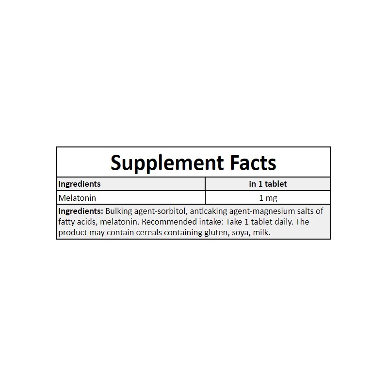 Beneficii Melatonina - Ajuta la scurtarea timpului necesar adormirii - Ajuta la imbunatatirea calitatii generale a somnului - Ajuta la ameliorarea sentimentului subiectiv al schimbarii bruste a sindromului fusului orar - Poate avea efecte antiinflamatorii - Are activitate antioxidanta Melatonina este un supliment alimentar in tablete care contin melatonina. Produsul este recomandat in special persoanelor care se lupta sa adoarma, sa lucreze in modul schimbator, sa calatoreasca si sa schimbe frecvent fusurile orare. Melatonina Este un derivat al triptofanului. Apare in corpul nostru ca un hormon produs de glanda pineala. In cantitati mai mici, melatonina este produsa de sistemul digestiv, leucocite sau maduva osoasa. Se numeste hormonul somnului, deoarece joaca un rol important in timpul reglarii timpului de somn, precum si al mersului pe tot parcursul zilei. Este responsabil pentru senzatia de somnolenta si pentru scaderea temperaturii si tensiunii arteriale in timpul noptii. O problema importanta este schimbarea brusca a fusului orar, asa-numitul „Jet-lag”. Simptomele sunt cauzate de perturbarea ceasului biologic. Functionarea corecta a ceasului biologic depinde de productia de melatonina si cortizol. Melatonina ajuta la scurtarea timpului necesar adormirii si la ameliorarea sentimentului subiectiv al unei schimbari bruste a sindromului fusului orar. Melatonina ajuta in plus la reducerea stresului oxidativ. Prospect Melatonina Mod de administrare: Consumati 1 portie (1 comprimat) pe zi, cu 30 de minute inainte de culcare. Un efect benefic apare atunci cand 1 mg de melatonina este consumat cu putin timp inainte de culcare sau 0,5 mg cu putin timp inainte de culcare in prima zi de calatorie si in urmatoarele cateva zile de la sosirea la destinatie. Ingrediente Pentru o portie Melatonin 1 mg
