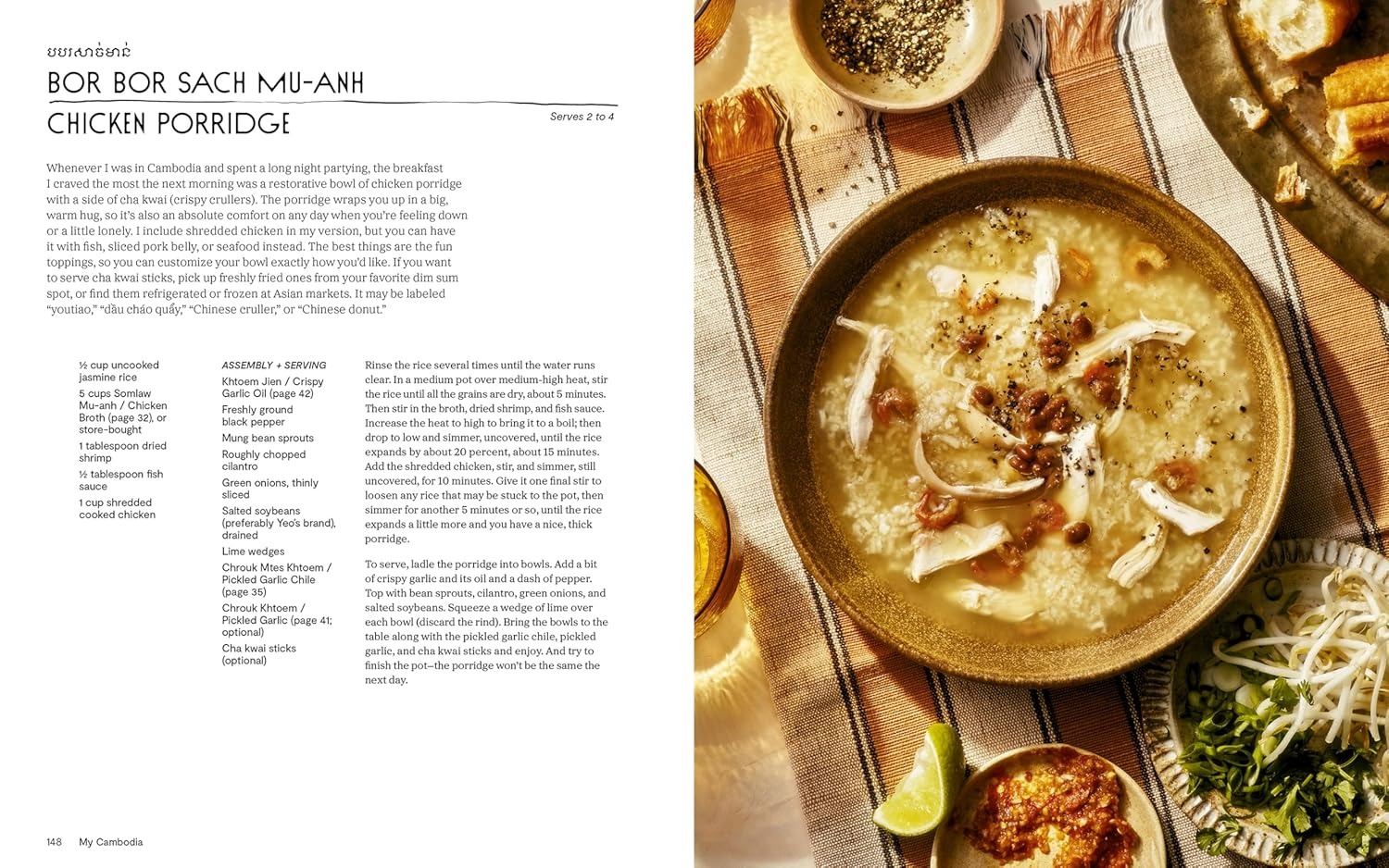 Khmer recipes and culinary techniques are traditionally passed orally from generation to generation, and in My Cambodia, Nite takes special care to preserve these dishes. Filled with the historical context of Cambodia’s Golden Era, cultural fun facts like the rules of rice, and introspective anecdotes on using food as a tool to connect with community, My Cambodia aims to make Khmer American cuisine accessible to all.With recipes organized by different times and places throughout Nites life, this cookbook takes you on a journey from her childhood in Stockton, California to Cambodia to Nites popular Bay Area restaurants Nyum Bai and Lunette. Discover her take on dishes such as Kuy Teav Phnom Penh, the fragrant pork and noodle soup that started it all for Nite; Nom Pachok Somlar Khmer, a delicate, rustic chowder filled with rice noodles; and Amok, fish tucked into an aromatic mixture of kroeung and coconut milk and steamed until it puffs up like a souffle. For dessert, try the decadent Nom Kong, donuts glazed in palm sugar and topped with sesame seeds.Whether you are new to Cambodian food or have a bowl of kuy teav every morning for breakfast, My Cambodia will inspire you to connect with your own communities and stir up new, joyful creations.