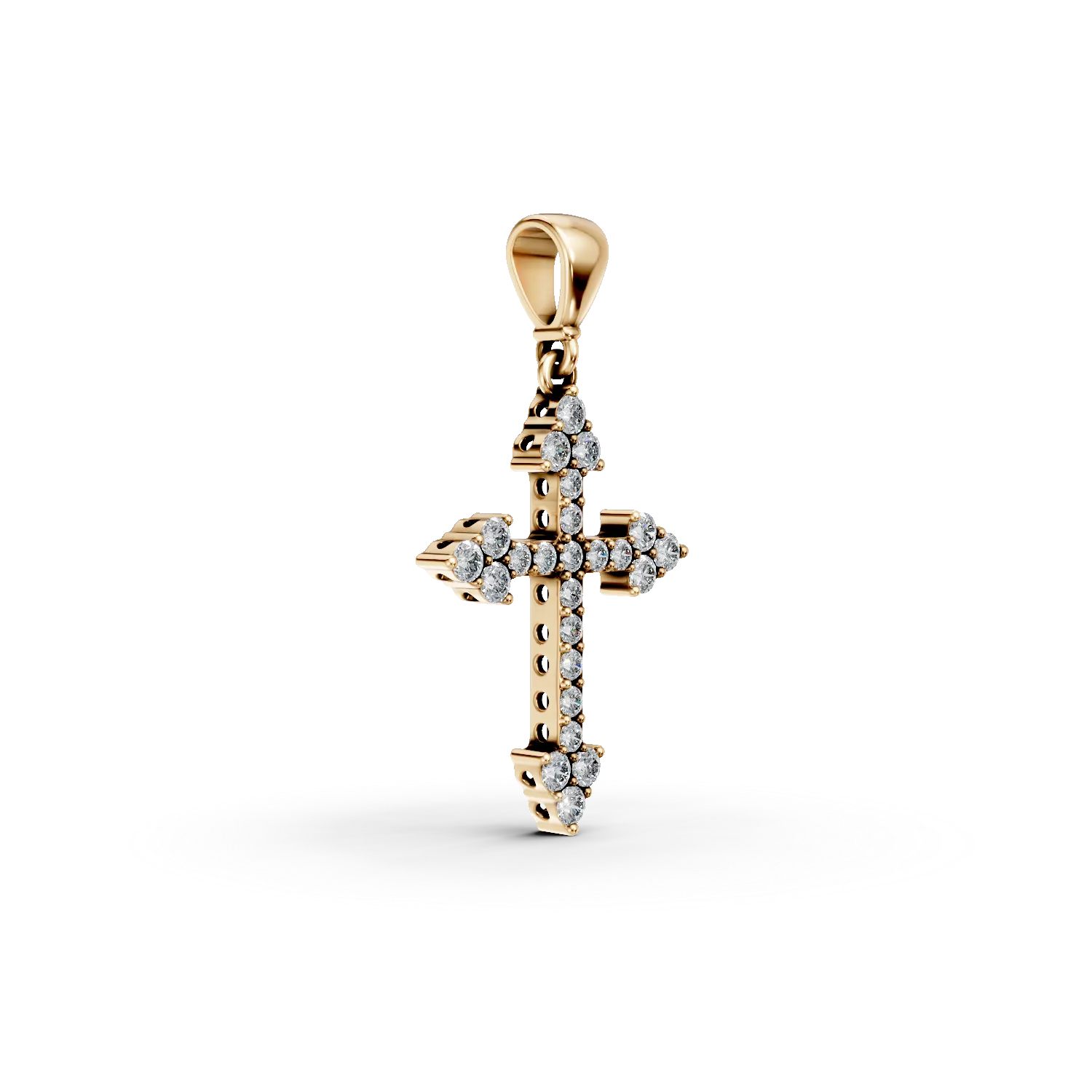 O bijuterie care se remarca prin simplitate si eleganta. Acest pandantiv cruce din aur galben cu zirconii este perfect pentru a fi purtat in orice context, de la birou la o iesire in oras. DAAR - un strop de glamour in viata ta.