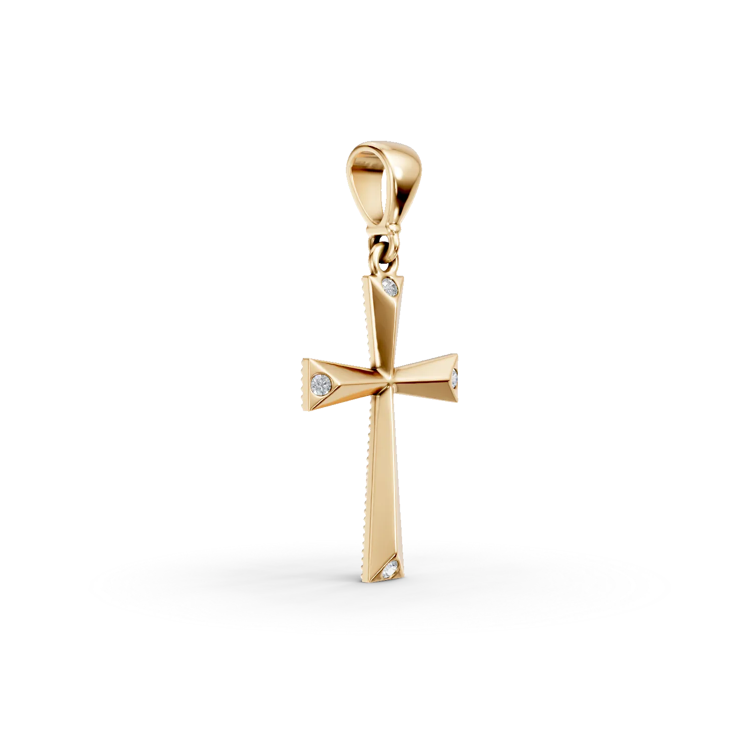 Accesoriul ideal pentru o femeie cu stil. Acest pandantiv cruce din aur galben cu zirconii se potriveste perfect oricarui outfit. DAAR - bijuterii care reflecta personalitatea ta.