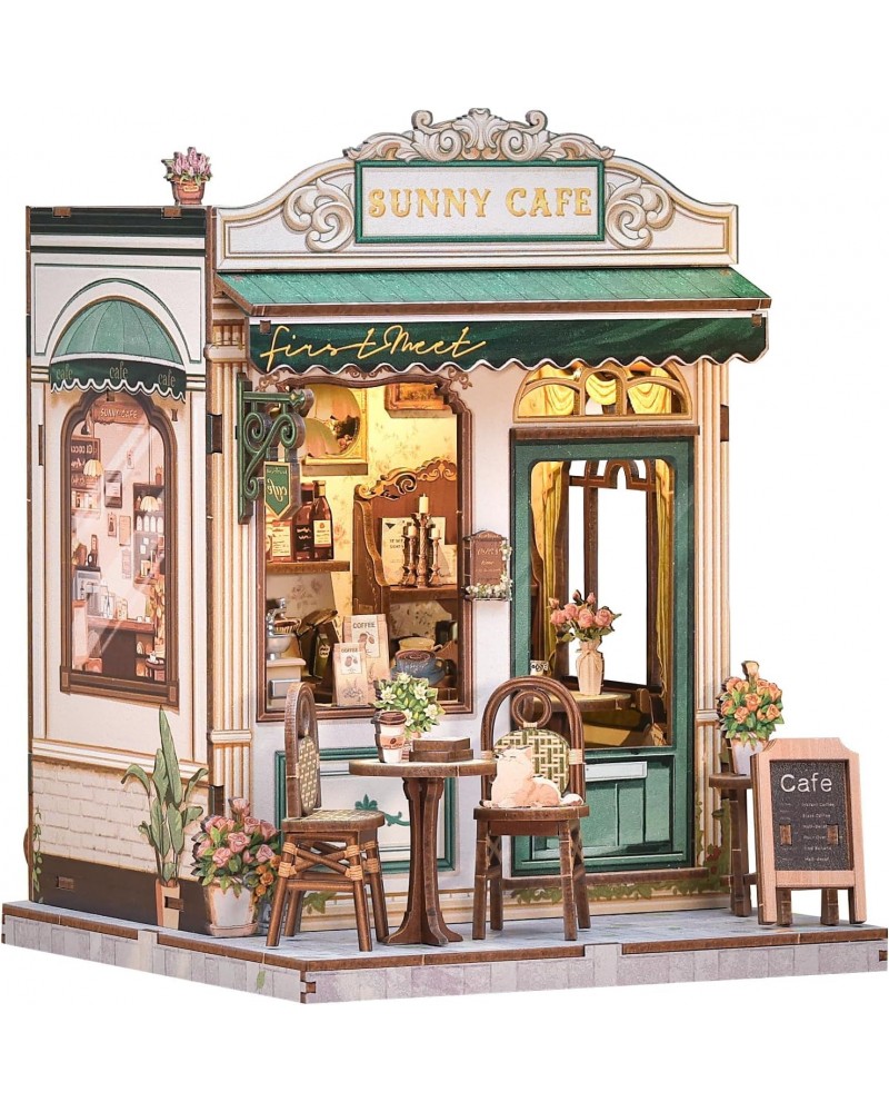 Sunny Cafe combina nuante linistitoare de alb cremos si verde vintage, creand un spatiu cald si relaxant, ca o pauza in timp. Texturile naturale si farmecul retro se impletesc armonios, folosind tranzitii delicate de culori, linii curate si detalii atent gandite pentru a construi un mic refugiu elegant. Lumina soarelui se asterne bland peste masa cafenelei, iar vita si plantele din colturi adauga un ritm sezonier subtil — transformand aceasta mini cafenea intr-o evadare poetica din rutina zilnica.Boabe de cafea si dispozitive de preparare, aparatul de espresso cu cesti, rasnita cu pungi de cafea proaspata si masa cozy a cafenelei creeaza o scena calda, autentica si plina de personalitate.