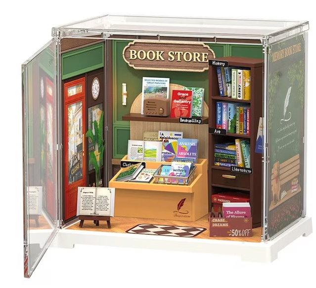 Hai sa-ti trezim amintirile dintr-o epoca in care oamenii vizitau librariile pentru a cumpara volume cu coperta tare, papetarie parfumata, enciclopedii si multe altele. Informatia era atent verificata, insotita de bibliografii complete, povestile aveau dublu sau chiar triplu sens, iar copertile si ilustratiile erau realizate cu minutiozitate de artisti adevarati. Arta era umanista, iar literatura era plina de emotie.Memory Book Store reuneste aceste elemente – o marturie a geniului uman neatins de influente generate de computer. Poate ca noi suntem ultima generatie care isi mai aminteste puritatea acestor idei, asa ca sarbatoreste-le cu acest kit nostalgic de la Rolife. Plin de carti de arta si rafturi de lemn, acest DIY Miniature House este o piesa de colectie spectaculoasa, care va atrage toate privirile.