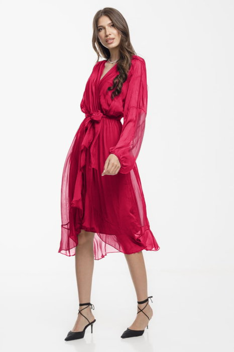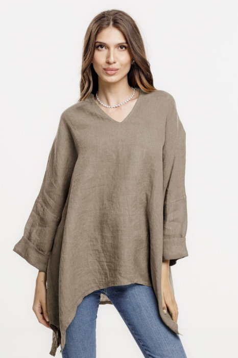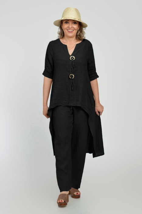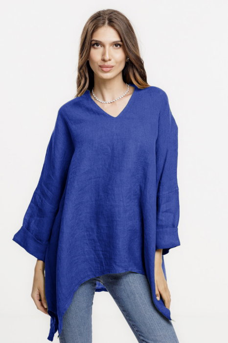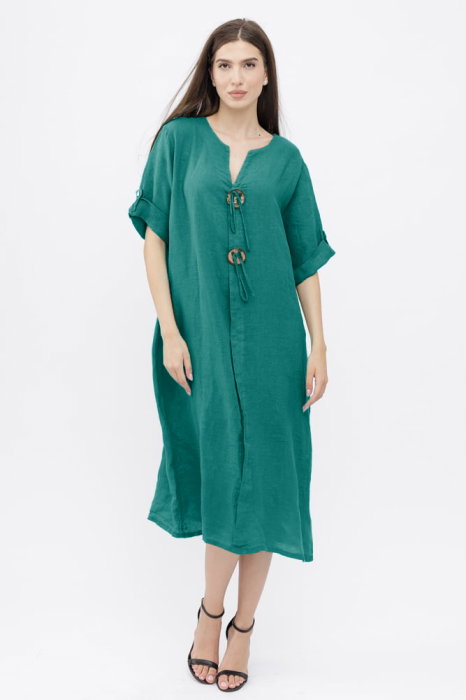 Maneca 3 4 ce se poate ridica si prinde cu un nasturel Decolteu in V Are buzunare laterale ascunse Material: In Este talie unica si se potriveste marimilor: M, L si XL, 2XL Dimensiuni: umeri 46 cm, bust 114 cm, sold 123 cm,lungime 118 cm Modelul...
