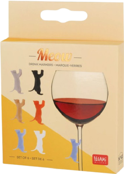 Cine a spus ca pisicile nu isi plac stapanii?Setul de 6 markere pentru bauturi Meow de la Legami este aici pentru a le demonstra ca se insala!Alege una dintre elegantele pisicute pentru paharul tau, iar noul tau prieten blanos va sta alaturi de tine toata seara. La fel si bautura ta!Lavabil si reutilizabilAvertismente!Spalati inainte de utilizare.