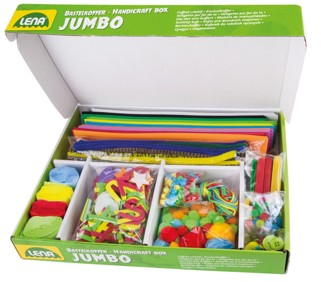 Valiza pentru micii mestesugari, perfecta pentru activitati creative.Contine: hartie colorata piese din spuma EVA sarma plusata ochi mobili bobble-uri hartie creponata betisoare colorate pentru inghetata nasturi si multe altele 800 de piese per set, pentru ore intregi de creatie si distractie.