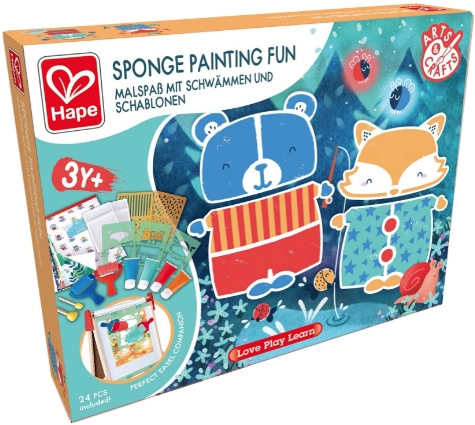 Set creativ - Pictura cu bureteleExcelent pentru incurajarea gandirii creative, a imaginatiei si a invatarii despre culori si modele.Ajuta la dezvoltarea abilitatilor motorii fine.Continut:Album A3, inclusiv 6 activitati, sfaturi si inspiratiePatru tuburi de vopsea de 60 ml in culori diferiteDoua role, doi bureti rotunzi pe betisoare Album A3 de 8 pagini cu 6 activitatiDimensiunea pachetului 24 x 33 x 5 cm