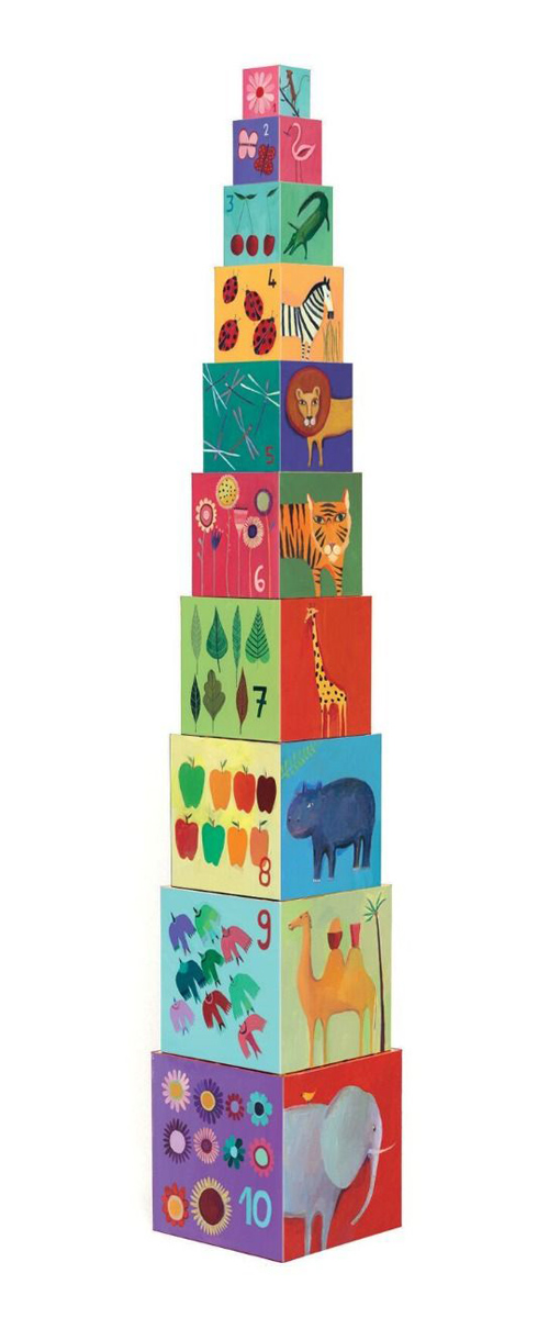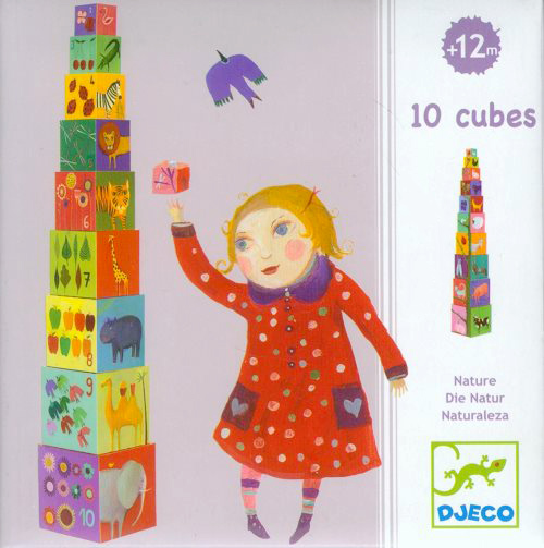 Set de 10 cuburi cu tema natura. Fiecare fata reprezinta cate un animal, planta sau insecta, minunat ilustrate. Inaltimea turnului format prin asezarea cuburilor unul peste altul este de 87 cm.