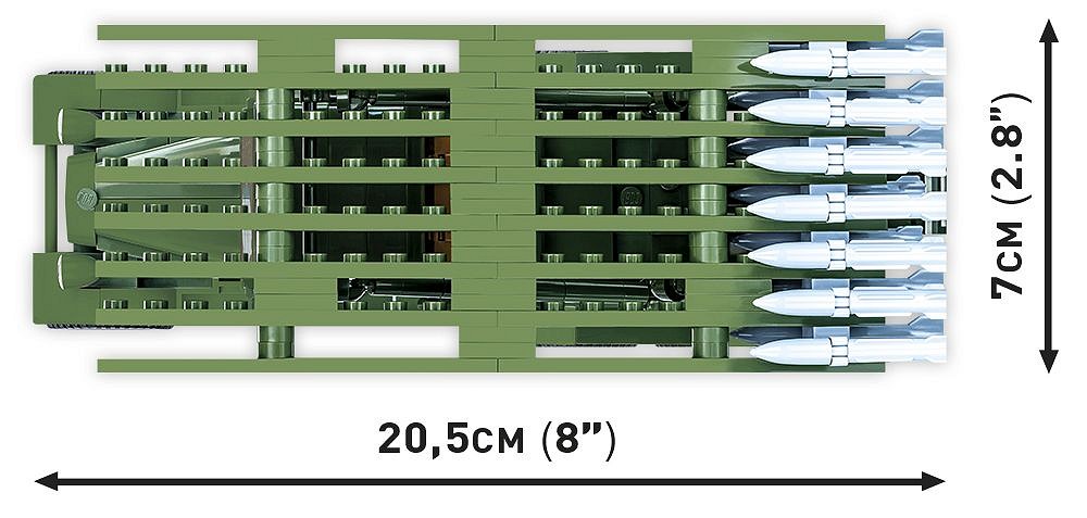 Katyusha face parte dintr-o serie de lansatoare de rachete fabricate de Uniunea Sovietica. Utilizarea lor in lupta a fost documentata de la mijlocul anului 1941. In ciuda preciziei scazute a rachetelor, bombardarea pozitiei inamice cu ajutorul Katyushas a fost foarte eficienta datorita concentrarii sale pe o zona relativ mica si a numarului mare de rachete. De asemenea, sunetul strident al lansarii rachetelor a provocat o panica justificata in randurile inamicului. Nu fara motiv, germanii au numit aceste arme „Organele lui Stalin”. Modelul BM-13 era un lansator de rachete montat pe sina montat pe sasiul masinilor ZIS. Rachetele M-13 erau montate pe doua randuri, iar raza lor, in functie de versiune, era de peste 9 kilometri.Setul celebrului lansator de rachete BM-13 KATYUSHA a fost dezvoltat la scara 1:35 care se potriveste figurilor COBI si este format din 440 de blocuri de constructie. Utilizarea celor mai noi elemente din catalogul COBI a permis reproducerea fidela a formelor caracteristice vehiculului original. Functionalitatile modelului sunt roti rotative echipate cu anvelope, unghiul de lansare reglabil, cabina vehiculului cu deschidere si rachete detasabile!Toate elementele grafice sunt printuri de inalta calitate. Cifrele reprezinta soldati sovietici din serviciul de lansare. Atat ofiterii, cat si figurinele inrolate au amprente detaliate si pe spate. Colectia noastra la scara 1:35 nu este completa fara acest set! Katyusha este una dintre cele mai recunoscute si distinctive arme folosite in timpul celui de-al Doilea Razboi Mondial. Constructorii cu experienta vor folosi cu siguranta sasiul camionului pentru a construi alte variante de vehicule din Al Doilea Razboi Mondial la scara 1:35. Construieste istorie, bucata cu bucata, cu COBI!Dimensiuni model 20.5 x 7 cmScara 1:35Numar de figurine: 2 (un ofiter si un soldat)