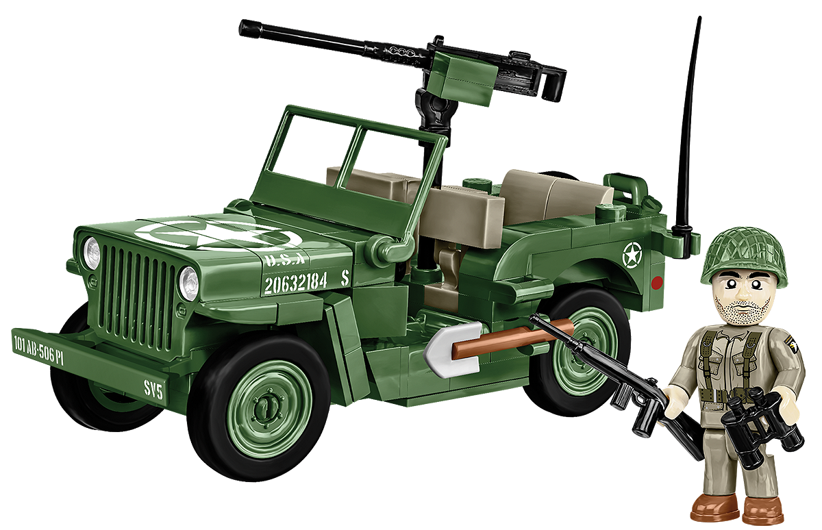 Jeep-ul Willys licentiat a fost lansat intr-o colectie pregatita cu ocazia aniversarii a 80 de ani de la Ziua Z si Batalia de la Normandia si este marcat cu un logo special al organizatorilor festivitatilor oficiale de aniversare! Debarcarea aliatilor in Normandia la 6 iunie 1944 a fost unul dintre cele mai importante evenimente din al Doilea Razboi Mondial si a avut un impact urias asupra cursului sau!Cel mai popular vehicul off-road din lume a fost proiectat la o scara de 1:35 si consta din 132 de elemente. Masina de caramida este echipata cu o mitraliera grea si accesorii. Rotile cu anvelope din cauciuc se rotesc si poti misca masina in timpul jocului. Setul include o figurina care infatiseaza un soldat din Divizia Aeropurtata Americana 101 (Screaming Eagles). Pe vehicul si pe figurina sunt imprimate de inalta calitate, care sunt modelate pe marcaje istorice preluate direct de pe o masina istorica detinuta de COBI! Nici macar nu am omis detalii minuscule precum peticele cu un vultur caracteristic pe umarul soldatului! Setul completeaza perfect seria foarte bogata Historical Collection WWII de la COBI!Jeep-ul Willys MB este un vehicul off-road legendar care a jucat un rol esential in timpul celui de-al Doilea Razboi Mondial. Produs de compania americana Willys-Overland Motors, a facut parte dintr-un program militar pentru a furniza vehicule armatei Statelor Unite si aliatilor sai. Willys MB se caracteriza printr-un design simplu, soliditate si fiabilitate in conditii dificile de teren. Dimensiunea sa compacta, durabilitatea si capacitatea de a naviga terenuri dificile l-au transformat intr-o legenda in istoria auto. Dupa razboi, popularitatea Jeep-ului Willys MB a contribuit la dezvoltarea marcii Jeep si a devenit o sursa de inspiratie pentru modelele ulterioare de vehicule off-road. Astazi, Jeep-ul Willys MB este apreciat de colectionari si iubitori de vehicule militare si clasice auto.132 de elemente de inalta calitateModel de masinaO figurina care infatiseaza un soldat americanAccesorii, armeProdus sub licenta originala JEEPProdus in UE de o companie cu peste 20 de ani de traditieBlocurile indeplinesc standardele de siguranta ale produselor destinate copiilorComplet compatibil cu alte marci de blocuri de constructieBlocurile cu imprimate nu se zgarie sau nu se pateaza si nu se estompeaza in timpul jocului sau sub influenta temperaturiiScara 1:35Dimensiuni model: 10.5 cm x 5 x 7 cm