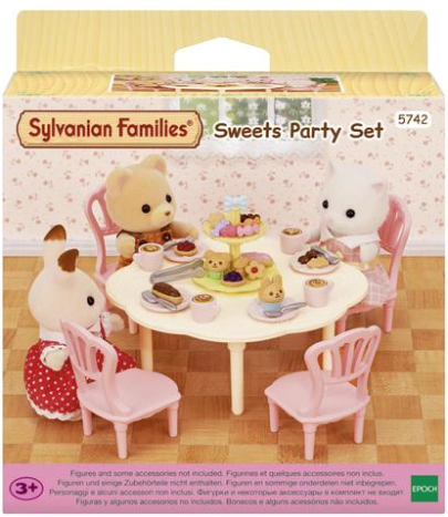 O masa mare cu patru scaune, incarcata cu dulciuri de savurat. Sylvanienii tai vor sta la coada pentru a fi invitati la aceasta petrecere. Masa mare si cele patru scaune pentru oaspetii tai fac din acesta setul perfect pentru petrecere, potrivit pentru orice ocazie speciala.Include seturi de farfurii pentru patru persoane, plus cappuccino tematice si un suport pentru tort umplut cu delicii gustoase. Figurinele nu sunt incluse. Nu este potrivit pentru copiii sub 3 ani, deoarece contine piese mici (pericol de sufocare).
