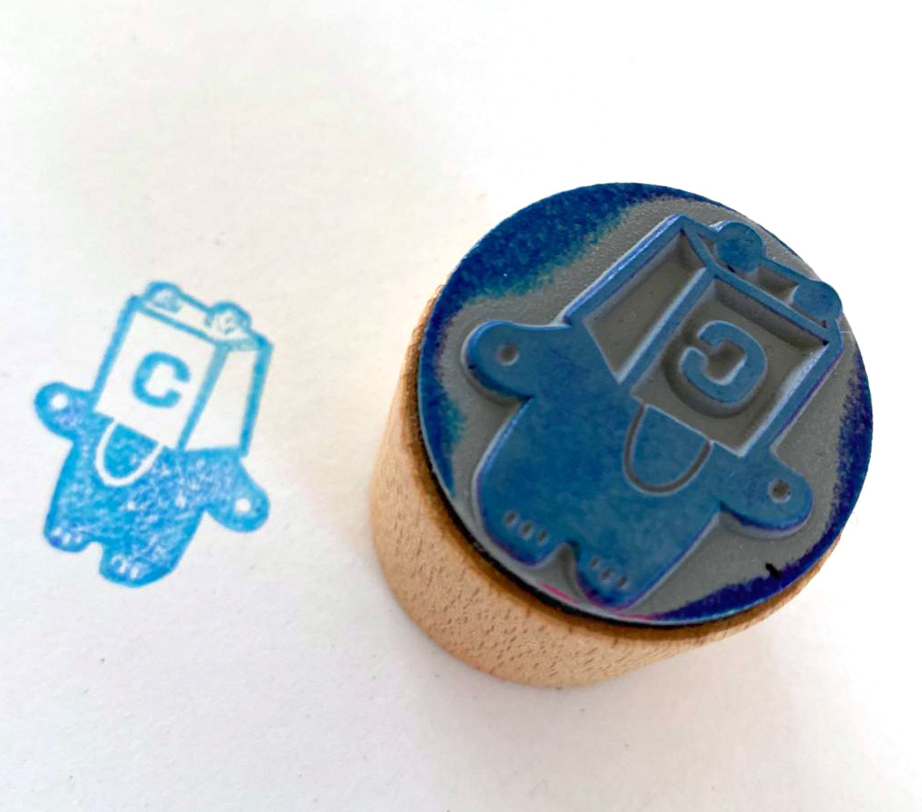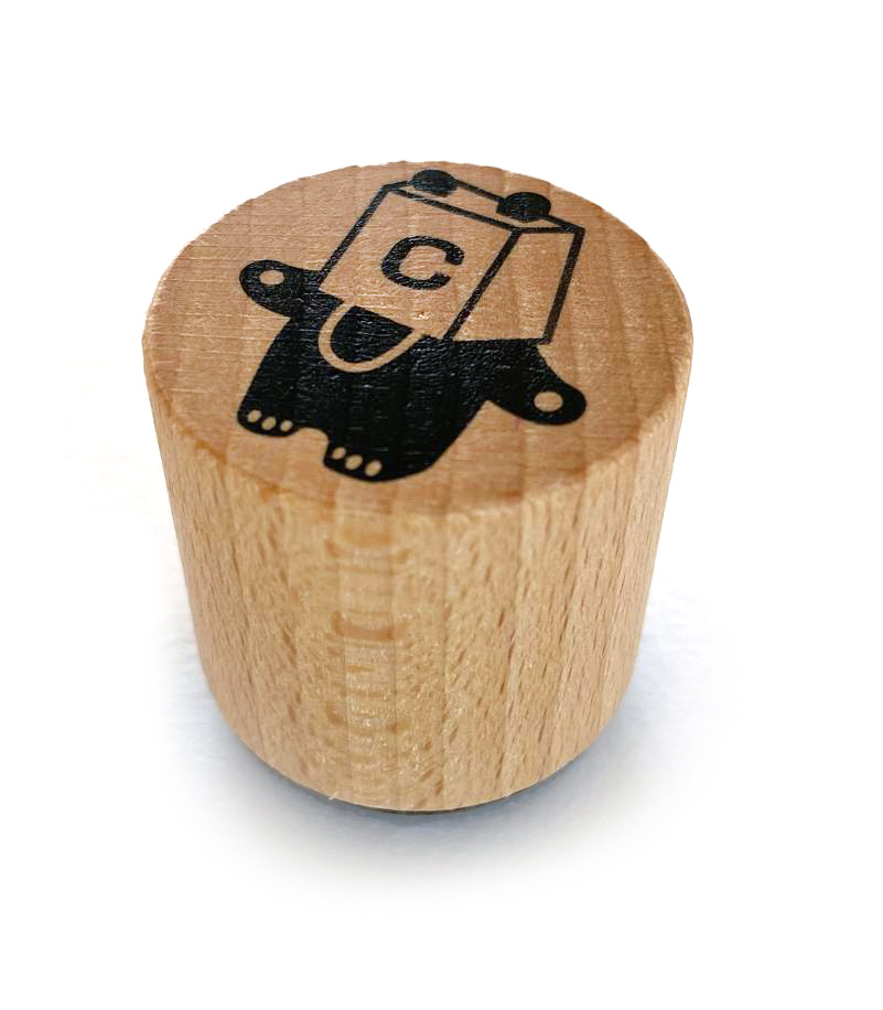 Stampila manuala cu suport de lemn.Diametru model/desen: 30 mm