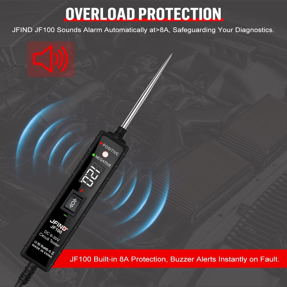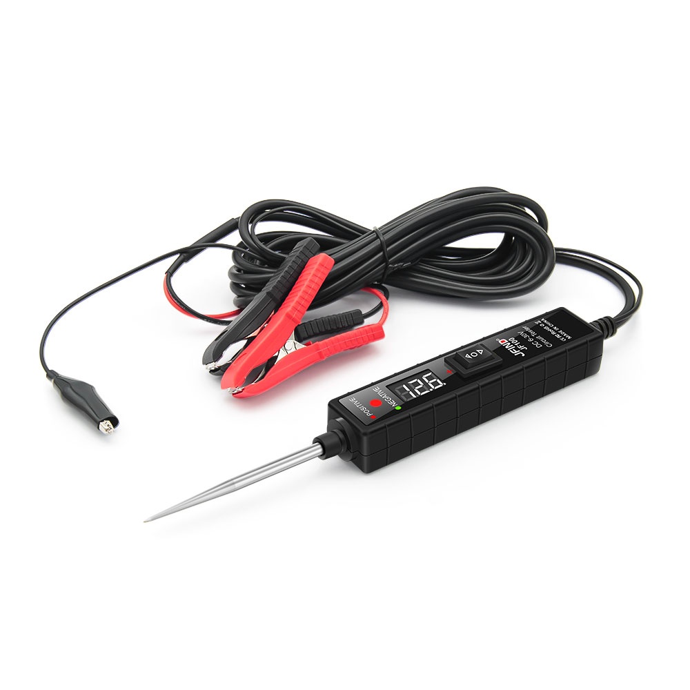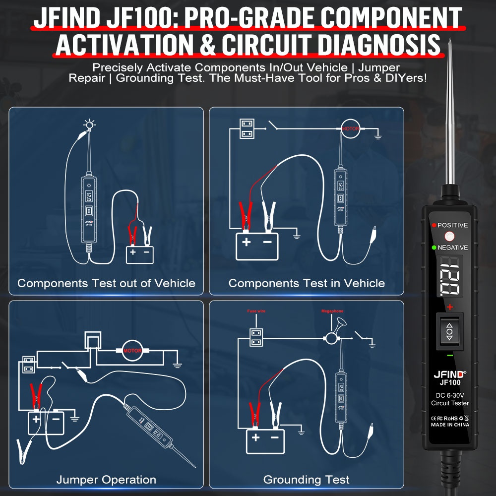 Testerul de circuite electrice auto JFIND JF100 este o unealta practica si eficienta pentru diagnoza rapida a instalatiilor electrice auto. Conceput pentru sisteme 6V-30V DC , acest aparat ajuta la identificarea rapida a tensiunii, polaritatii, continuitatii si defectelor electrice, fiind util atat in service, cat si pentru utilizatori avansati. Cu ajutorul sondei metalice, al clemelor pentru baterie si al afisajului digital, poti verifica rapid fire, circuite, sigurante, impamantare si componente electrice. Functia de localizare scurtcircuit te ajuta sa identifici mai usor firele defecte, iar functia de activare componente permite testarea unor consumatori si circuite direct din instalatie. Testerul are LED rosu pentru pozitiv , LED verde pentru negativ , precum si buzzer de avertizare , oferind indicatii vizuale si sonore clare in timpul utilizarii. In plus, protectia la suprasarcina de peste 8A contribuie la utilizare mai sigura in conditii reale de lucru. Este compatibil cu o gama larga de aplicatii: autoturisme, camioane, motociclete, barci, ateliere auto si lucrari de diagnoza electrica . Beneficii si functii principale test polaritate pozitiv / negativ test continuitate pentru identificarea firelor intrerupte test masa / grounding test localizare scurtcircuit activare si testare componente electrice functie jumper operation indicator LED rosu si verde alarma sonora / buzzer protectie la suprasarcina peste 8A afisaj digital pentru tensiune compatibil cu sisteme 6V-30V DC potrivit pentru auto, camion, moto si barci Specificatii tehnice Brand: JFIND Model: JF100 Tip produs: tester circuite electrice auto Tensiune de operare: 6V-30V DC Afisaj: digital Protectie la suprasarcina: 8A Temperatura de lucru: -10C pana la 60C Culoare: negru Utilizare: diagnoza electrica, verificare polaritate, continuitate, masa, scurtcircuit, activare componente Alimentare: prin conectare la baterie cu cleme Compatibilitate Compatibil cu: autoturisme camioane motociclete barci alte sisteme electrice DC 6V-30V Continut pachet tester circuite electrice auto JFIND JF100 cablu cu cleme pentru baterie clema de masa manual de utilizare
