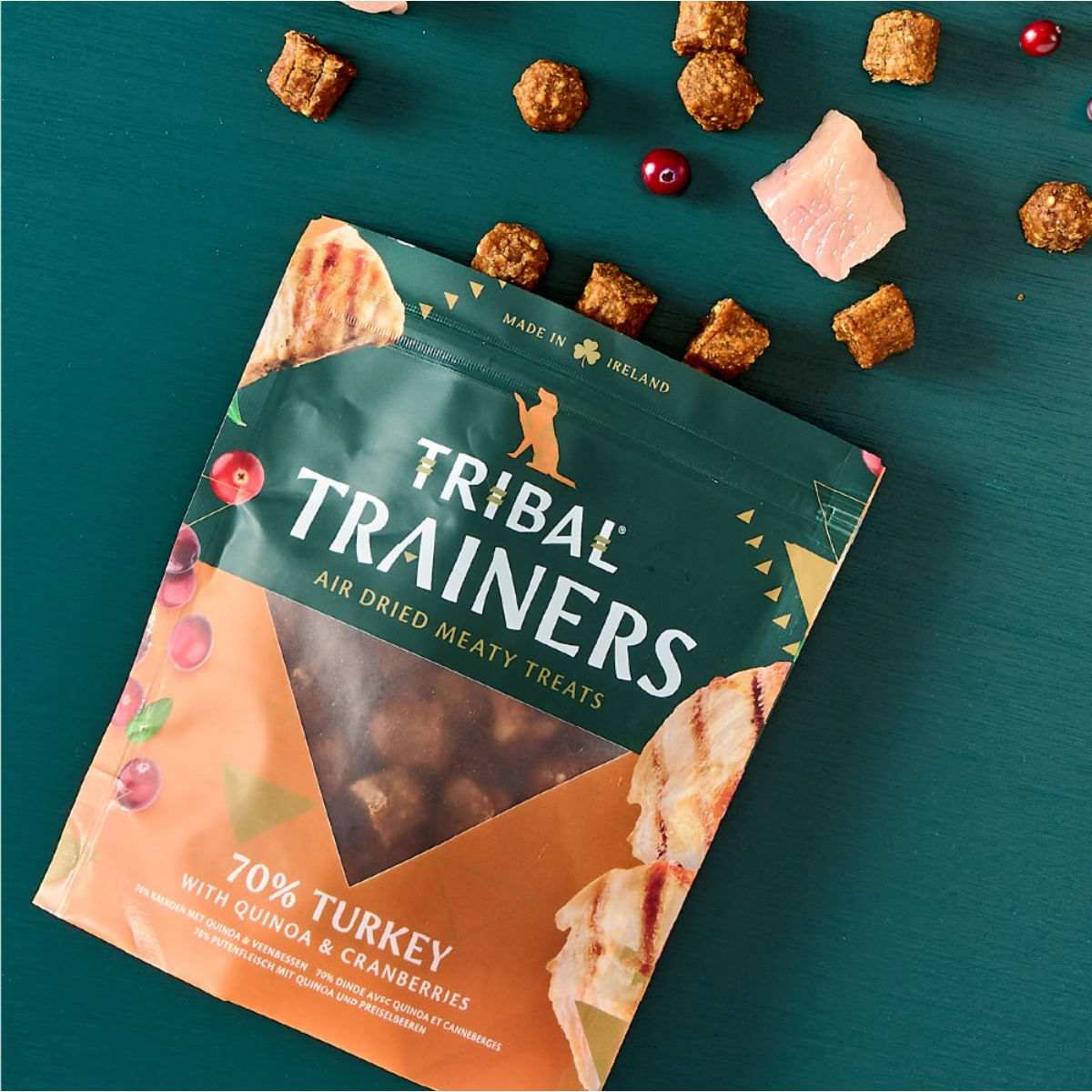 TRIBAL Trainers, XS-XL, Curcan și Merișoare, punguță recompense fără cereale câini, 80g