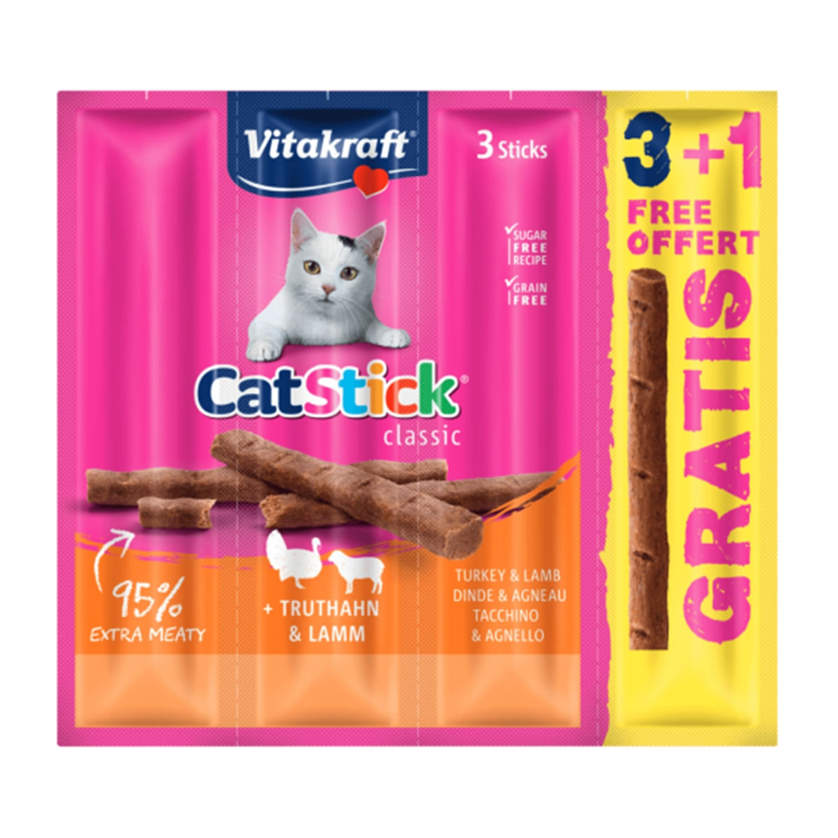 Vitakraft Cat Sticks Curcan și Miel, 3+1 Promo