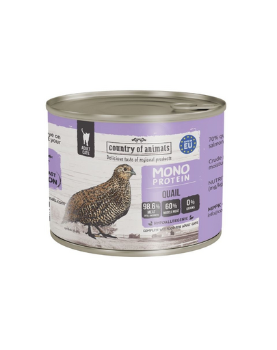 COUNTRY OF ANIMALS hrană umedă monoproteică cu prepeliță pentru pisici 200 g
