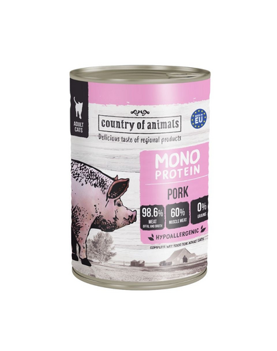 COUNTRY OF ANIMALS hrană umedă monoproteică cu porc pentru pisici 400 g