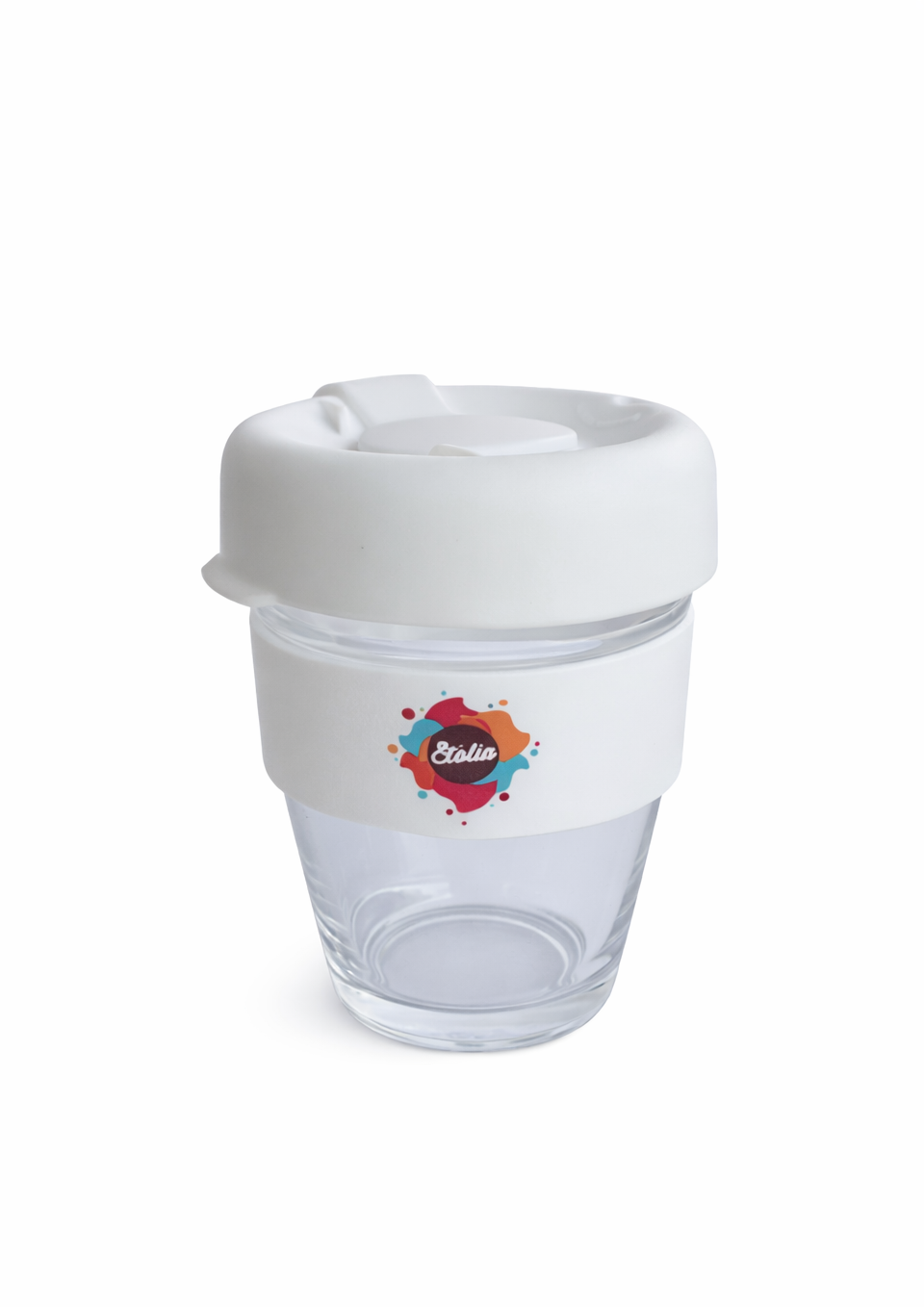 Pahar Termos Latte din sticlă cu capac alb din silicon Etolia 300ml
