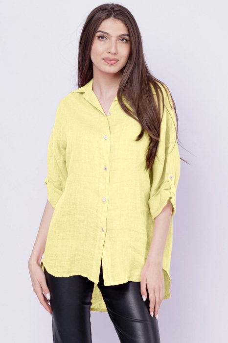 Camasa verde prazuliu din in cu nasture metalic decorativ