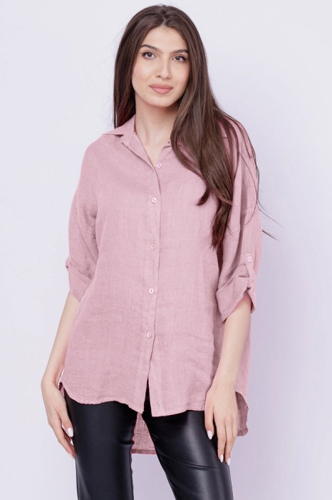 Camasa din in turcoaz cu siret pe spate in dreptul gulerului