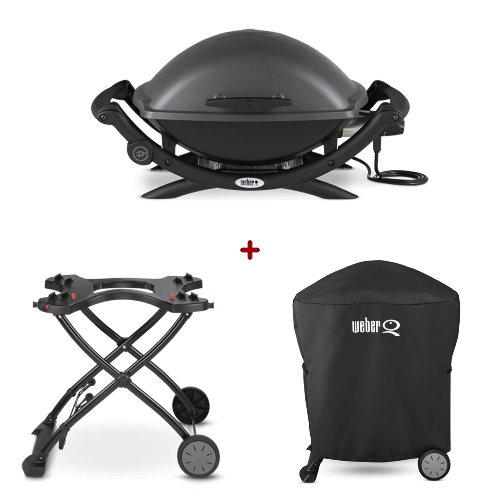 Starter pack gratar electric Weber Q 1400 - Antracit cu suport + husa