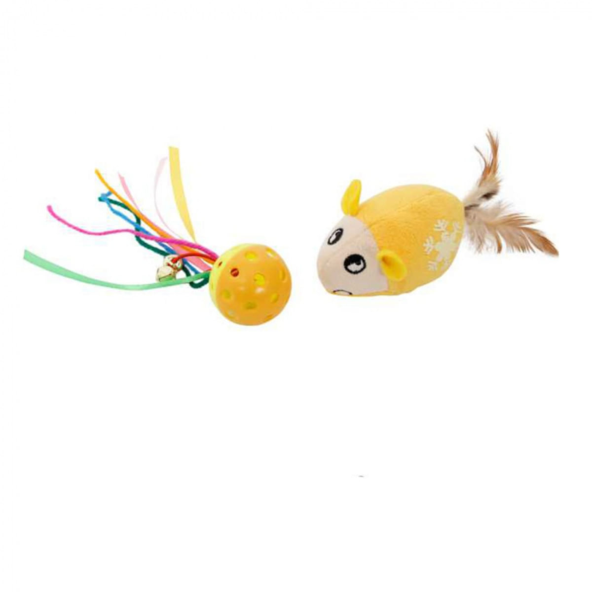 MON PETIT AMI Set Soricel si Bilă, jucărie stimulare pândă pisici, textil, galben, 2buc MON PETIT AMI Set Soricel si Bila, jucărie stimulare pândă pisici, textil, galben, 2buc