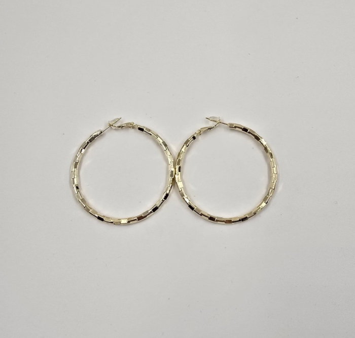Cercei creole aurii texturate cu efect fatetat si tija din argint 925 - Copie