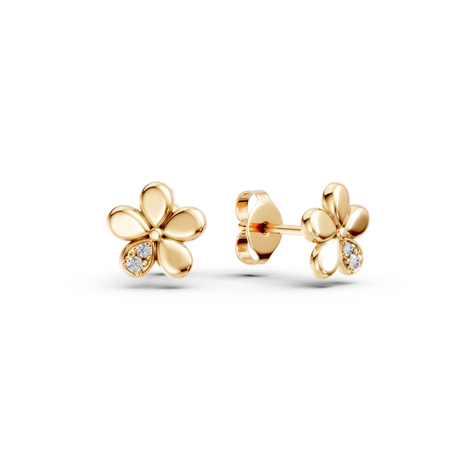 Cercei flori din aur galben cu zirconii