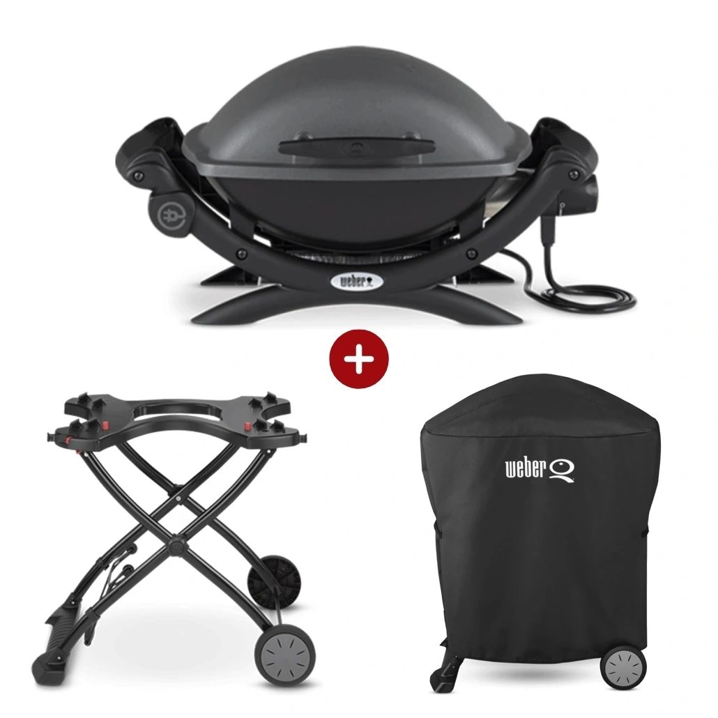 Set Gratar electric Weber Q1400 - Antracit + husa integrala + suport cu roti