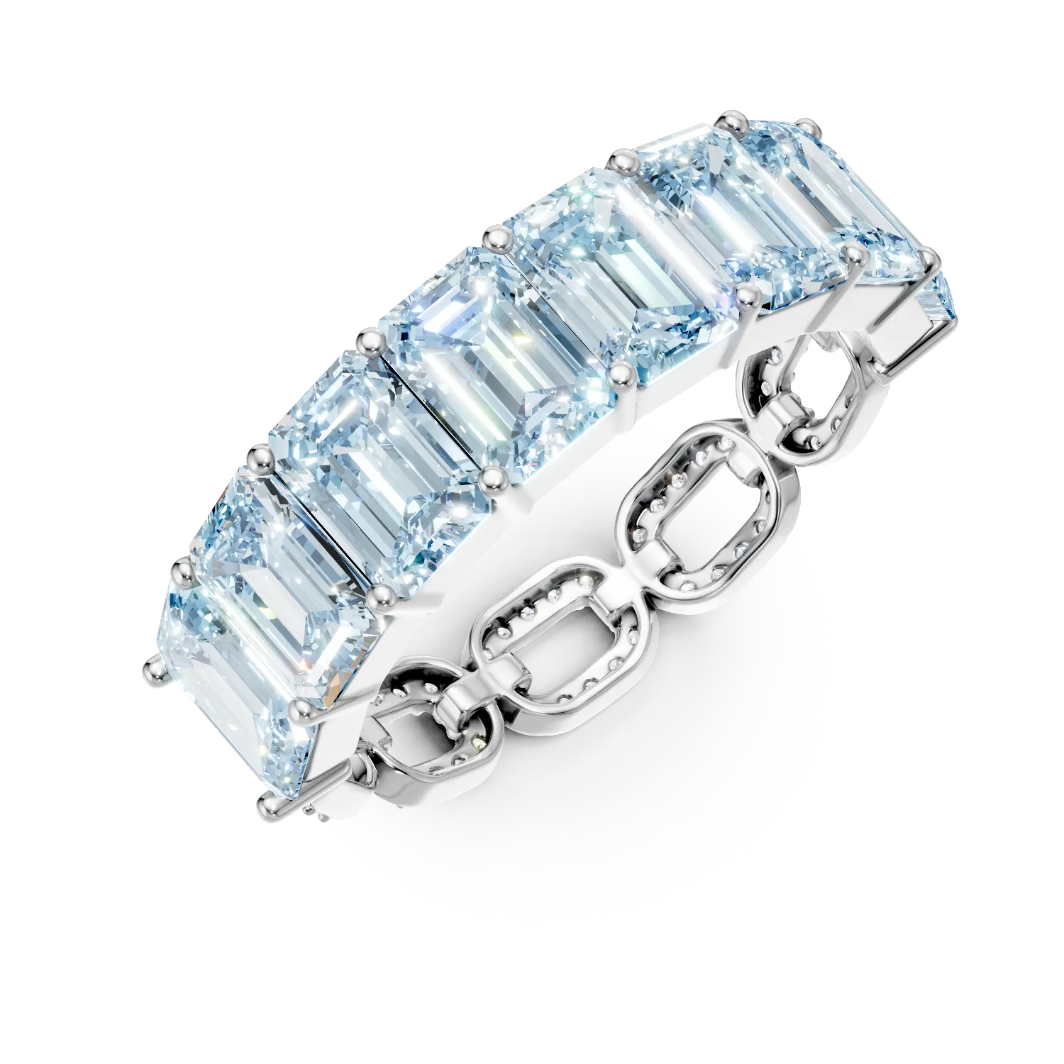 Inel semi eternity din argint cu zirconii albastre si transparente