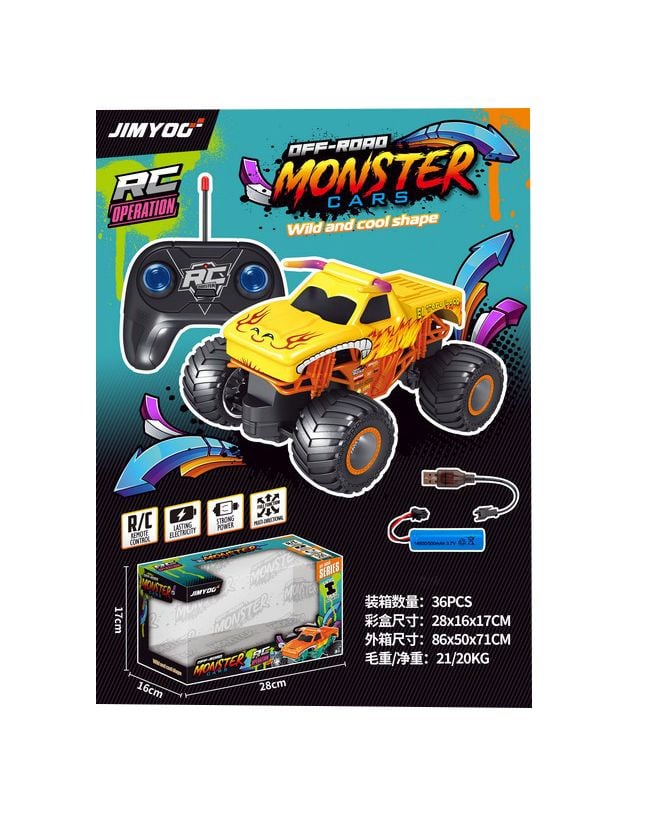 Masina Monster Truck OFF ROAD cu telecomanda, incarcare USB, acumulator inclus 6511110037717 Engros