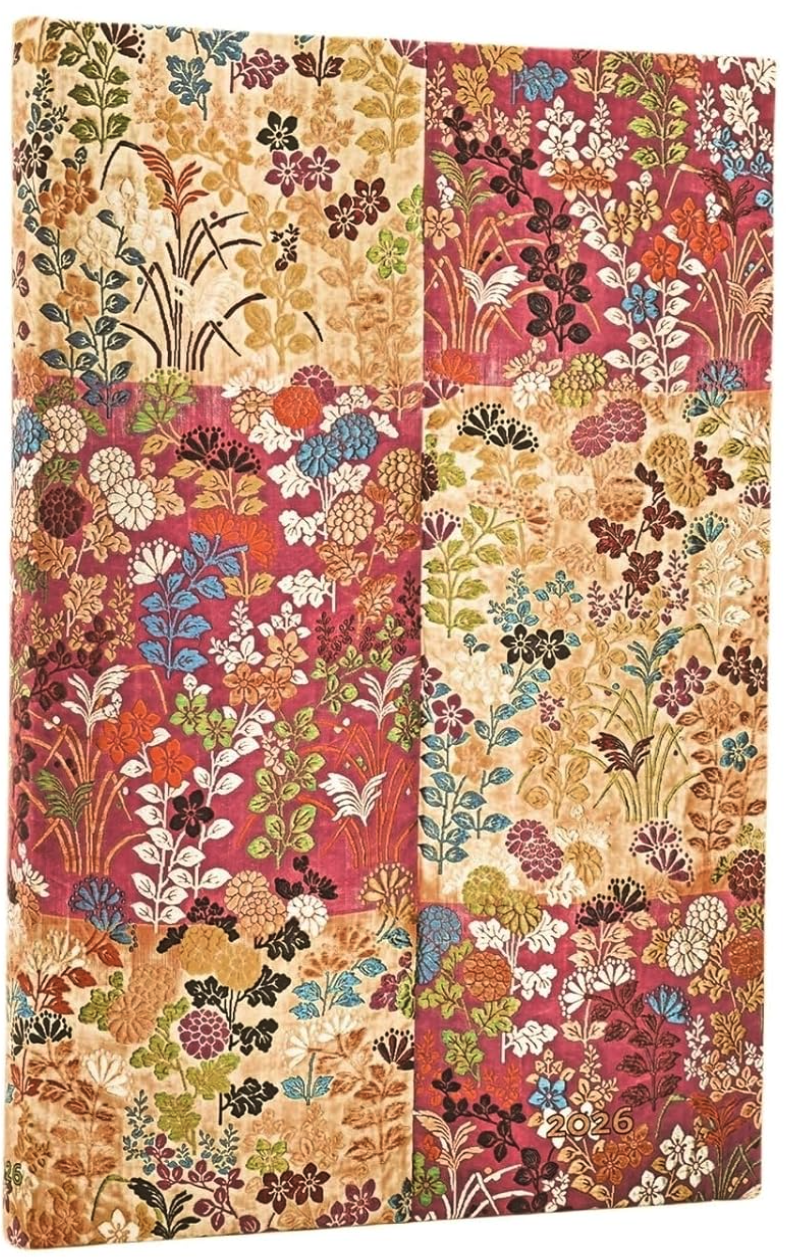 Agenda 2026 - Paperblanks - Kara-Ori Pink (Japanese Kimono) - Maxi 12-Month Horizontal Hardcover Flexi | Paperblanks