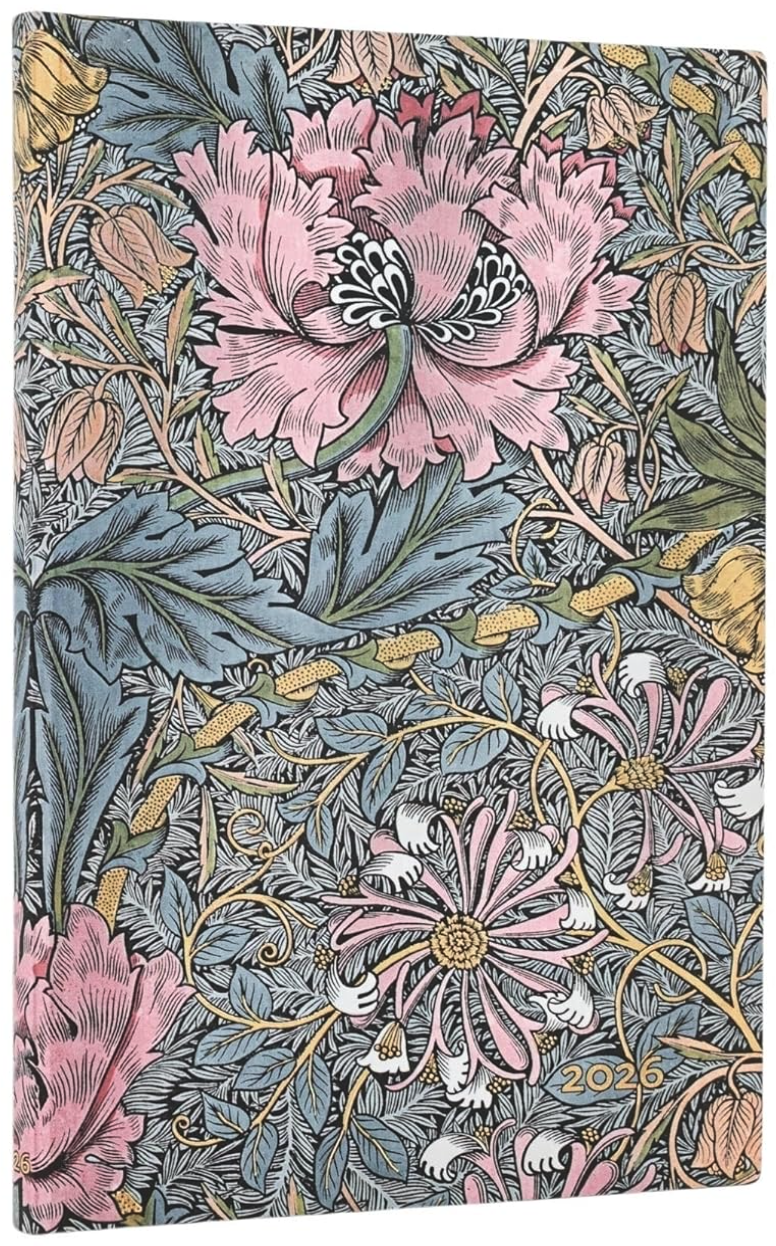 Agenda 2026 - Morris Pink Honeysuckle (William Morris) - Maxi 12-Month Horizontal Softcover Flexi | Paperblanks