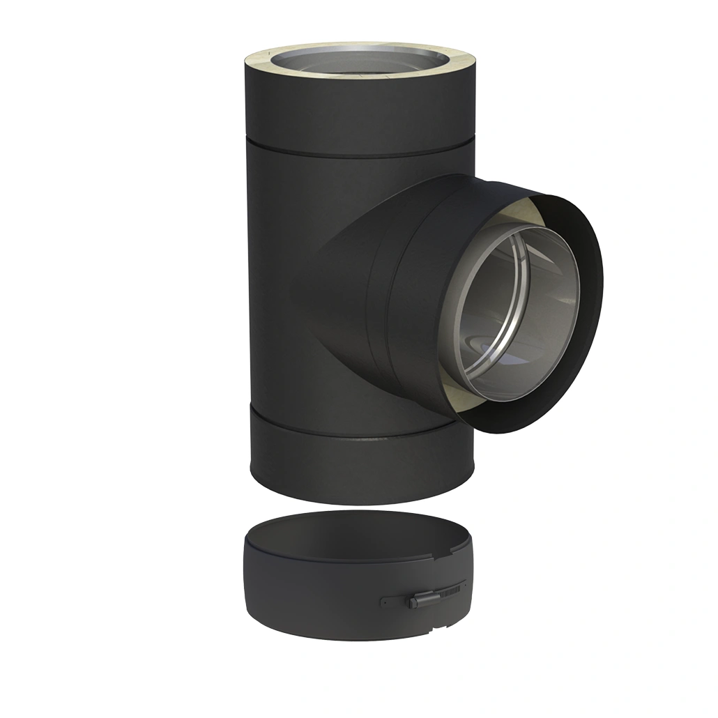 Racord T Burlan inox izolat - Negru fi150 - 90GR - Schiedel