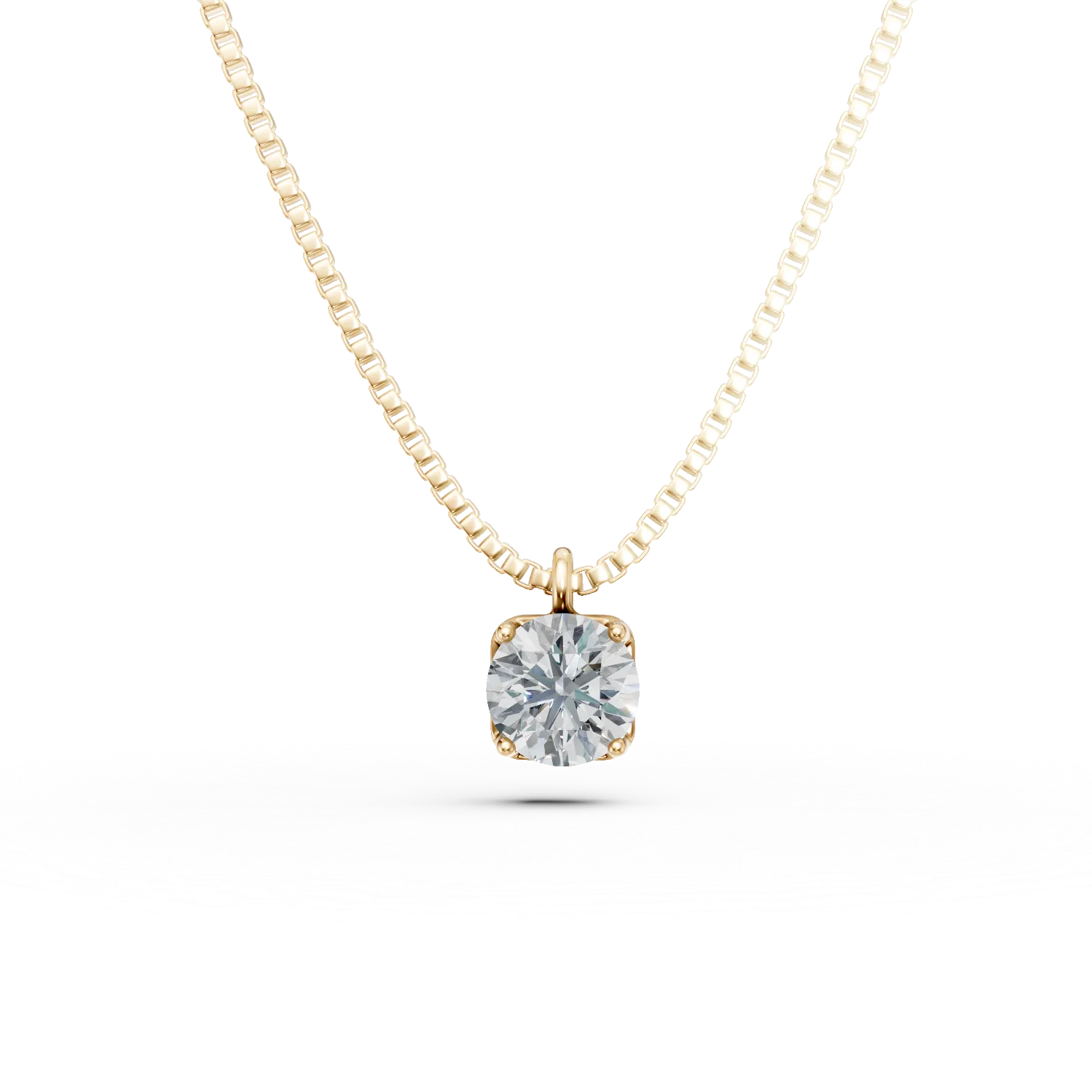 Lant cu pandantiv din aur galben cu diamant solitaire de 0.2ct creat in laborator