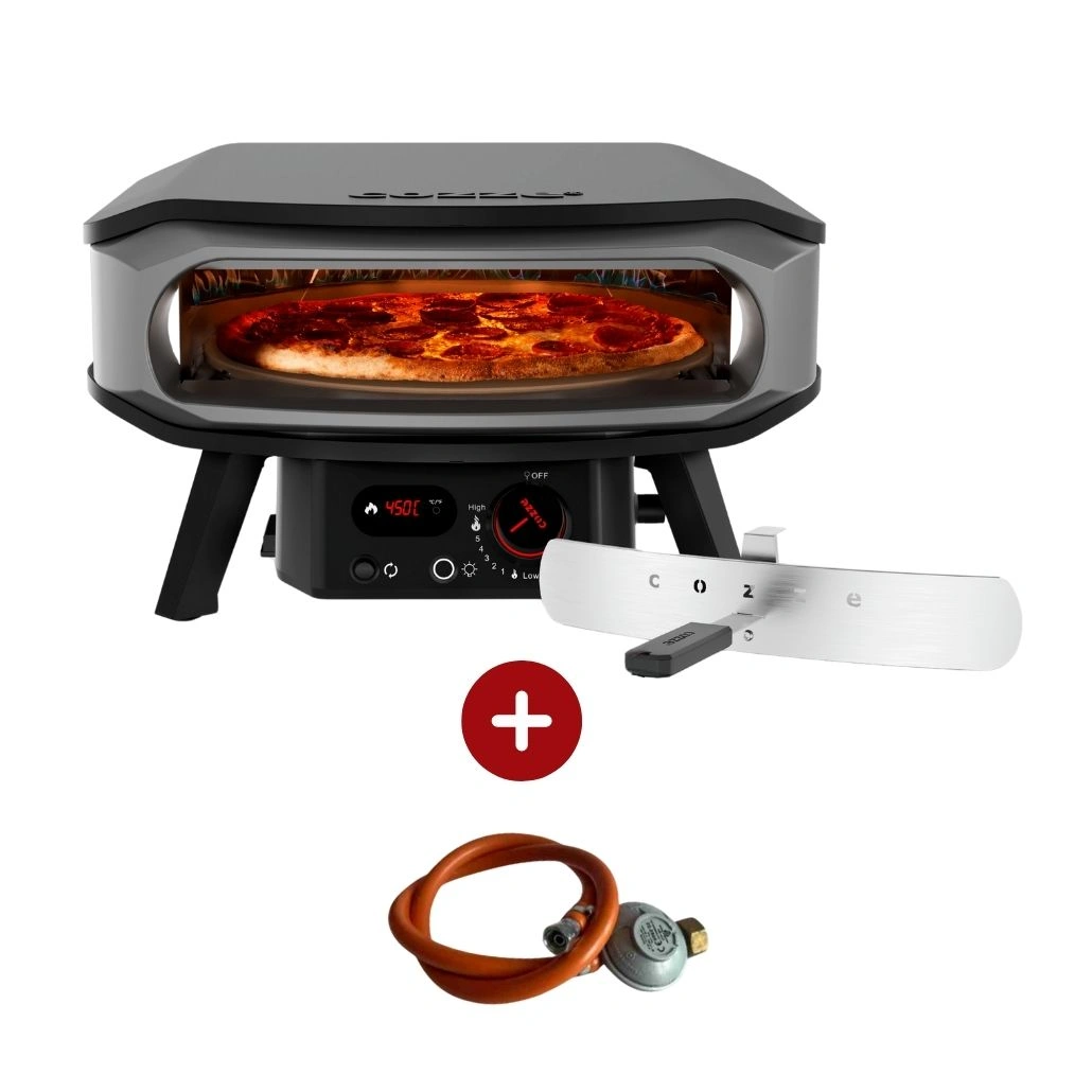Cuptor pizza pe gaz Cozze PREMIUM 42.5cm - piatra rotativa pentru pizza, termometru digital si lumina LED + REGULATOR