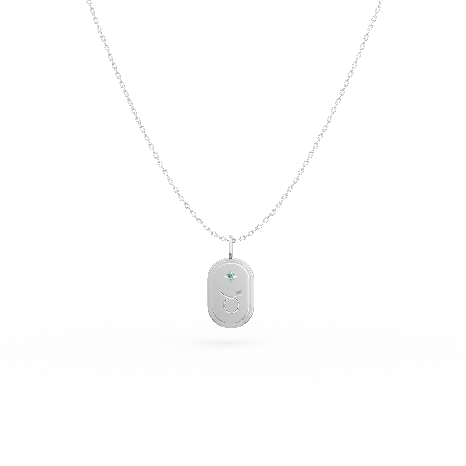 Lant cu pandantiv semn zodiacal Taur din argint cu zirconia verde
