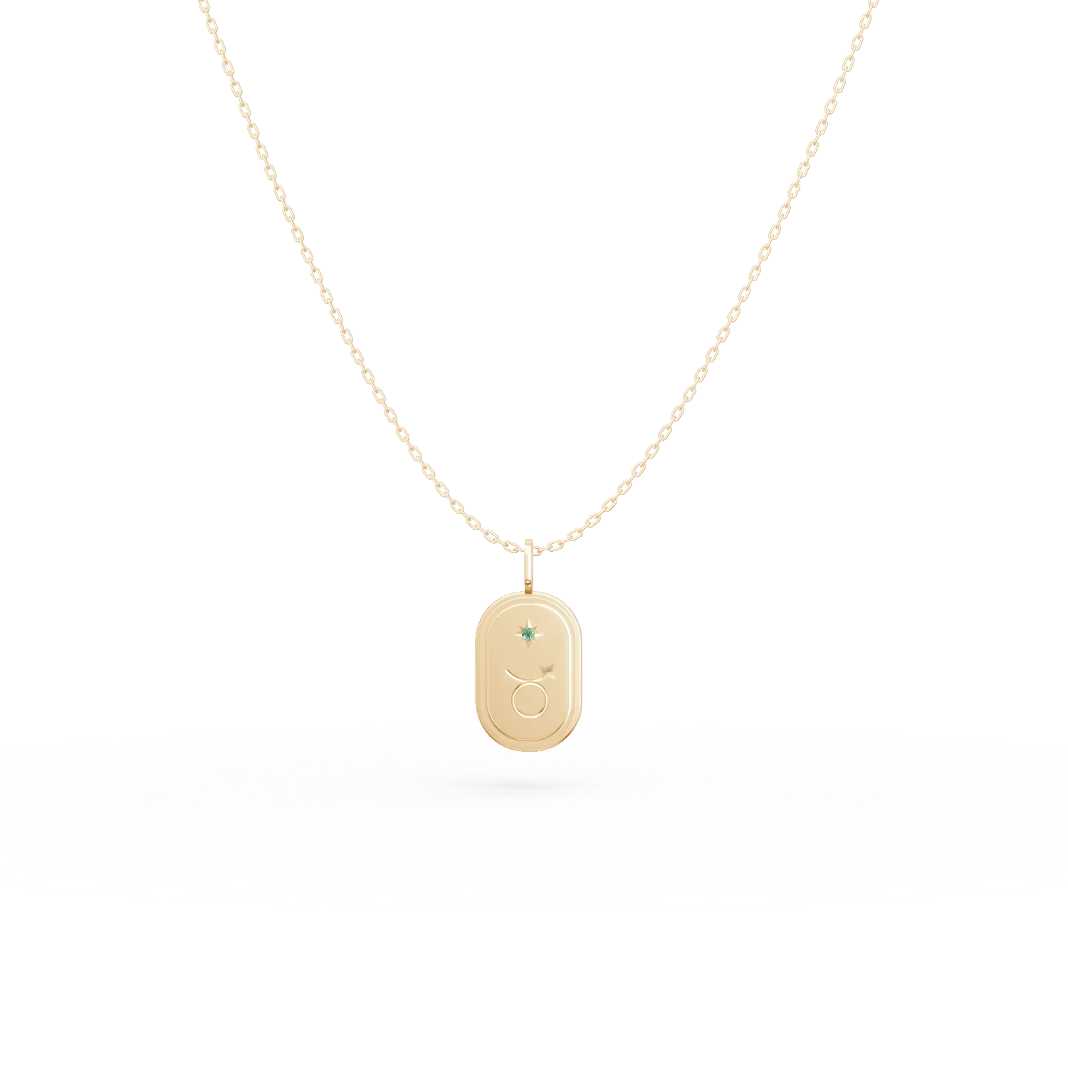 Lant cu pandantiv semn zodiacal Taur din argint galben cu zirconia verde
